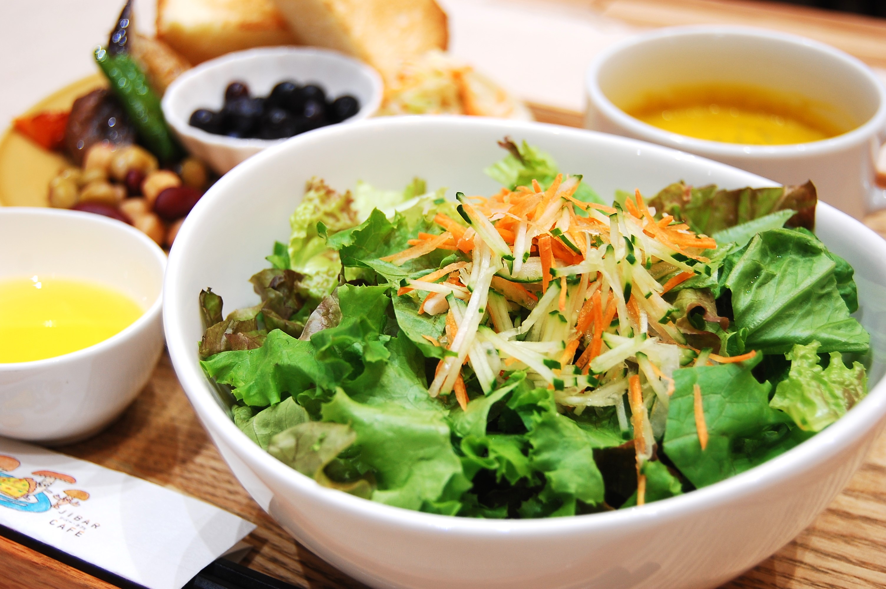 立川産の新鮮な野菜をたっぷり使用したサラダボウルは、鶏ハム・豆付でPFCバランスも良いメニューです。