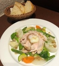 大山鶏胸肉と彩り有機野菜 温泉卵のサラダ(夜の前菜のサラダ、昼は予約要)