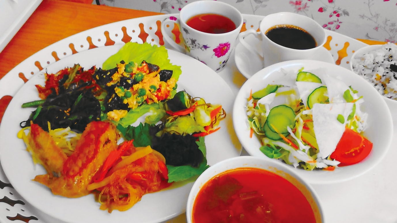 地場野菜を中心に旬の味を大切にしています。学生から家族の味で大もり無料です。