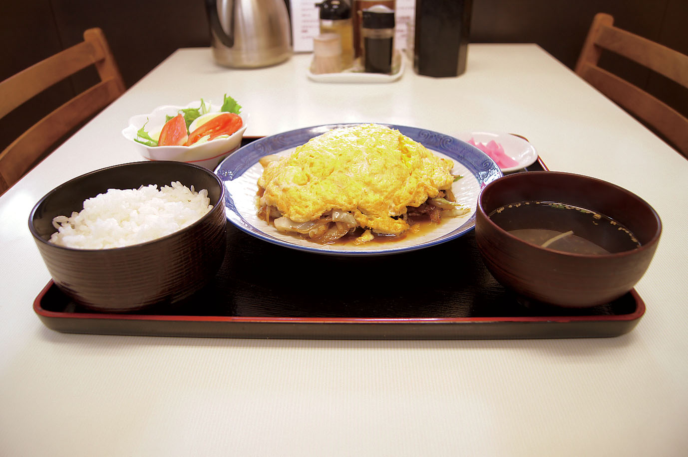 肉野菜炒めに卵焼きが帽子のように乗ったボリューム満点の料理。きっと満足頂ける商品です。めし上れ!!