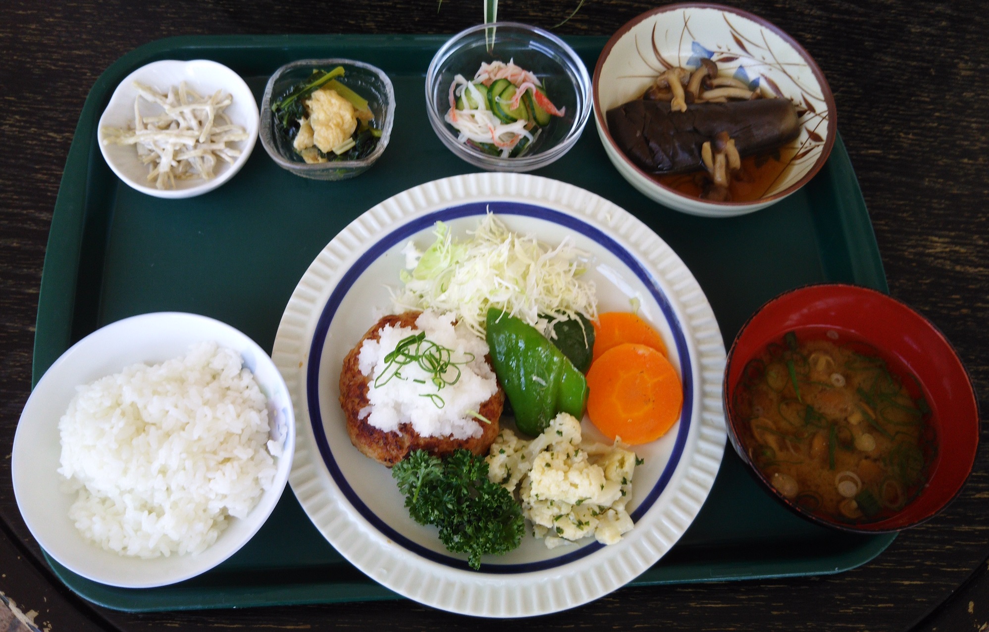 野菜とたんぱく質のバランスを考慮し500円で定食を提供しています。