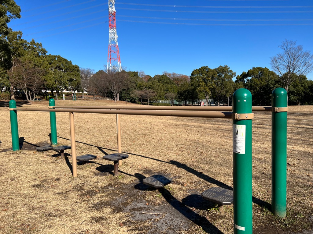 【設置遊具】背のばしステーション、パネルラダーステーション、サイクルステーション、ステップバランス、脚のばしステーション