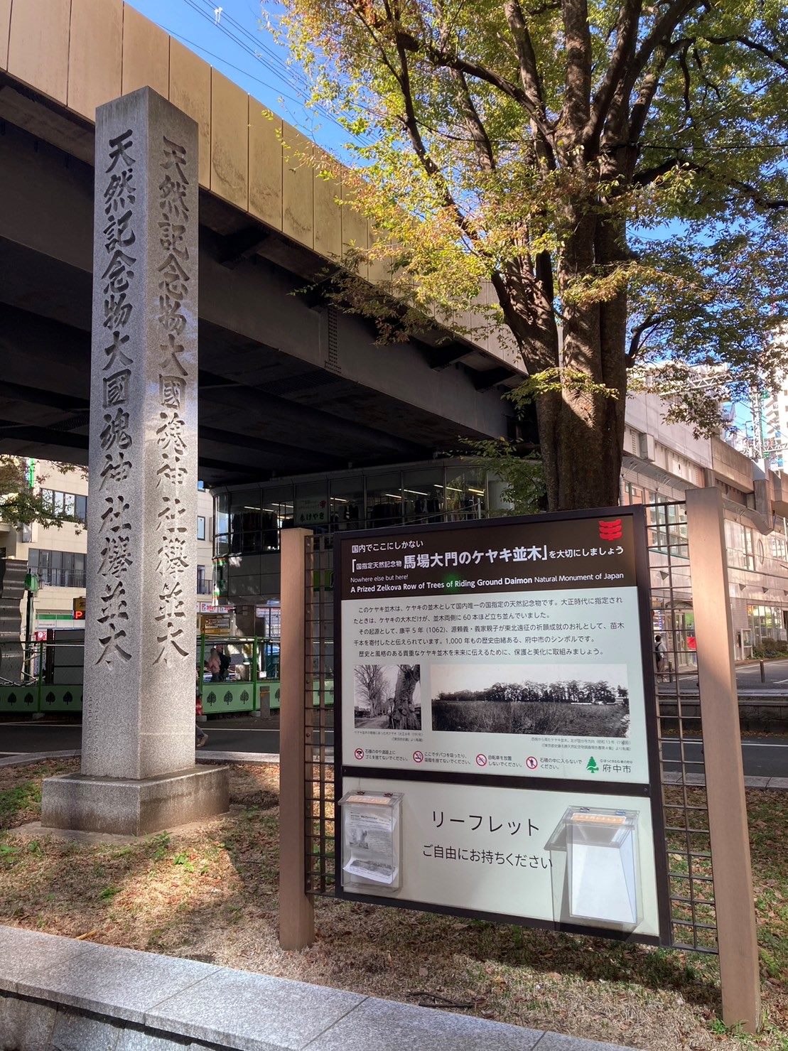 - 馬場大門のケヤキ並木源義家の像父 頼義とともに乱を鎮め、けやきの苗1,000本を大國魂神社に奉納したことが、馬場大門のケヤキ並木のはじまりと伝えられている。