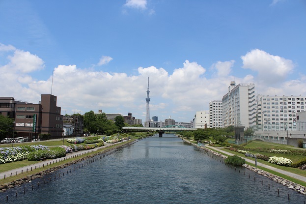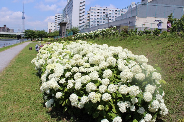 - 江戸川区側のアジサイアナベル穴場のフォトスポットとなっています。平成30年から植栽、6種類のアジサイを楽しむことができます。見ごろは5月中旬頃から